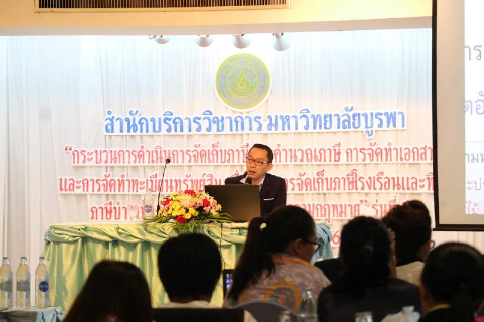 รุ่นที่ 6 BUU โครงการอบรมหลักสูตรเชิงปฏิบัติการ หลักสูตร : กระบวนการดำเนินการจัดเก็บภาษี การคำนวณภาษี การจัดทำเอกสารและการจัดทำทะเบียนทรัพย์สิน เพื่อใช้ในการจัดเก็บภาษีโรงเรือนและที่ดิน ภาษีบำรุงท้องที่ และภาษีป้าย ให้ถูกต้องตามกฎหมาย วันที่23 ธันวาคม 2561 ณ โรงแรมเมย์ฟาวเวอร์ แกรนด์ จังหวัดพิษณุโลก